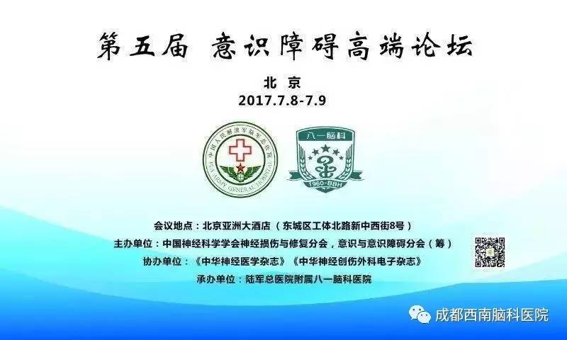 由中国神经科学学会神经创伤与修复分会、意识与意识障碍分会(筹)联合主办,《中华神经医学杂志》、《中华神经创伤外科电子杂志》、吴阶平医学基金会协办,陆军总医院附属八一脑科医院承办的第五届意识障碍高端论坛于今天上午在北京亚洲大酒店召开。