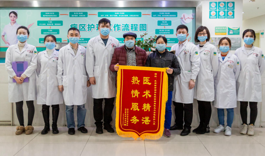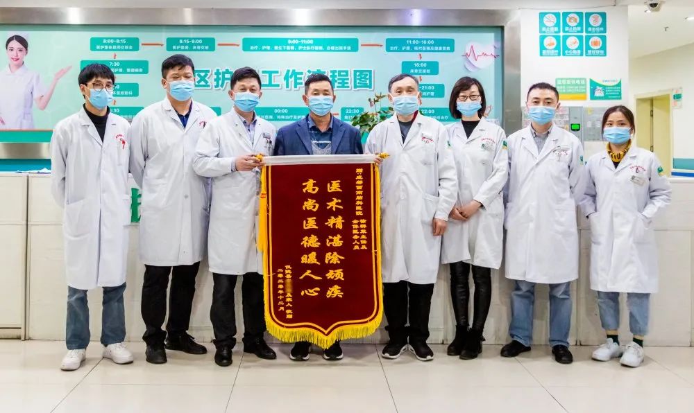 秦大叔渐进性肢体抖动8年多,运动迟缓4年多,诊断为帕金森病。一年前在我院通过脑立体定向仪手术治疗后改善明显,近日回院复诊,看看还需不需要用药。秦大叔对我院的治治疗果很满意,特意送来锦旗表示感谢。