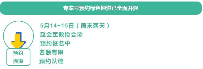 赵全军教授的会诊时间为5月14~15日两天,请大家合理安排预约时间。