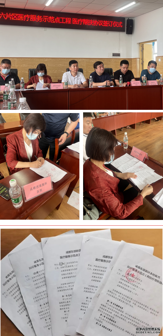 本次签约帮扶对象为成都东部新区石盘街道河嘴村、四方碑村,壮溪镇高产村、武庙镇团堡村,养马街道尹家祠村、金鱼池村6个村,与之前帮扶的石盘街道谢家祠村、郭家祠村,简阳艳丰村等4个村一起,实现了成都乡村振兴第六片区10个村医疗帮扶全覆盖。